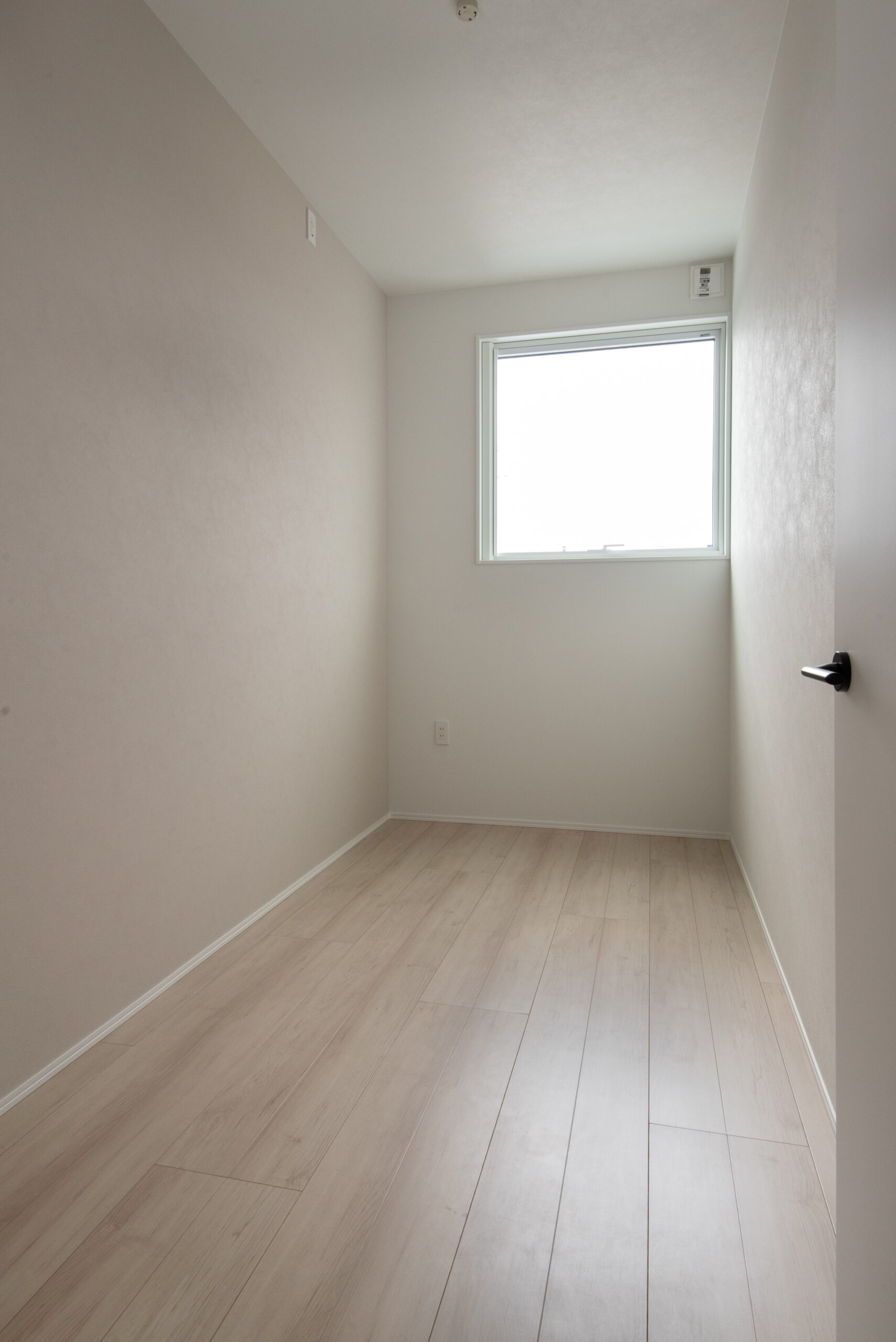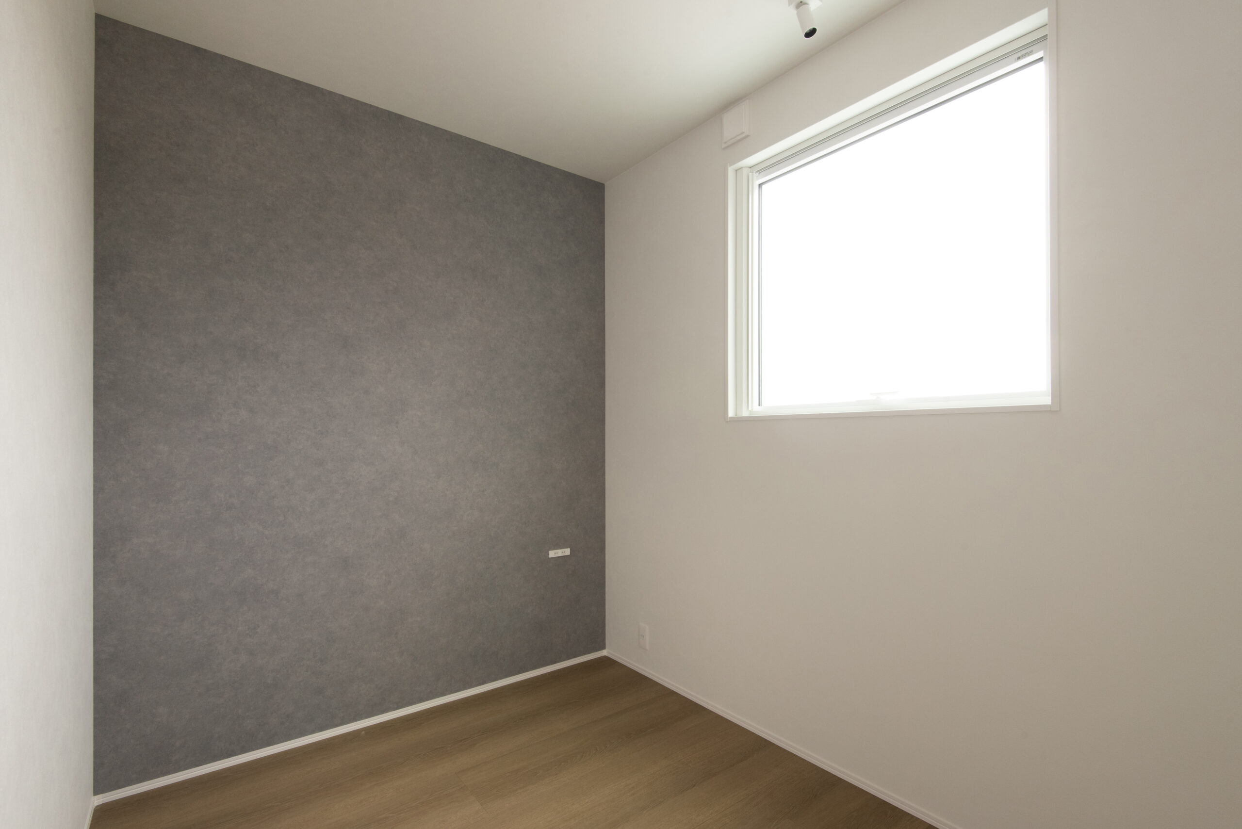 奥の押し入れスペースは、あえて壁を塗らず、自由に絵を描いたりシールを貼ったりできる“余白のある空間”としてつくられています。収納や趣味部屋、子どもの遊び場など、多目的に使えるスペースです。
