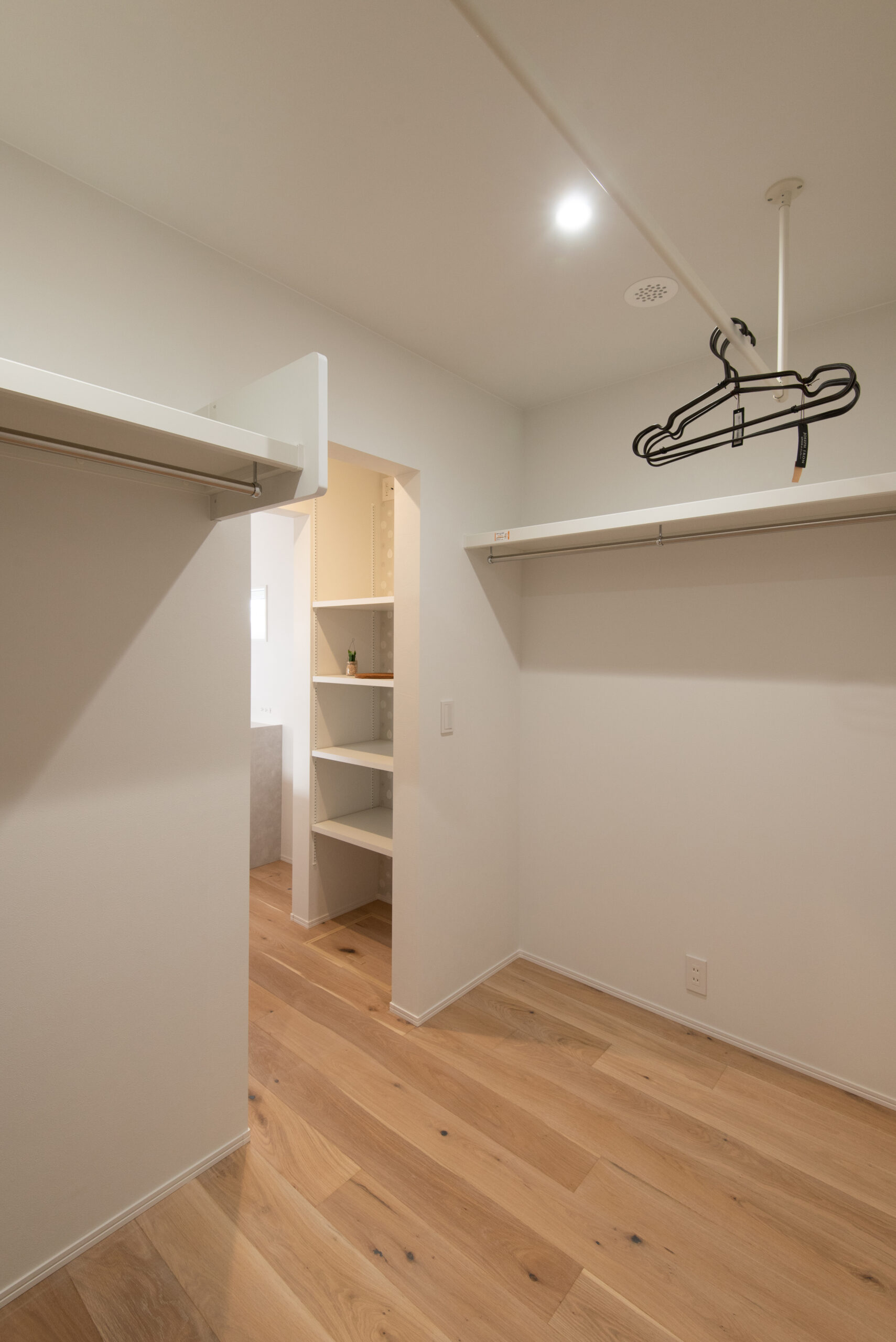 さらに、キッチンから続く動線上にパントリー → ウォークインクローゼット → 洗面脱衣室 → 物干しスペース