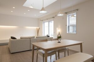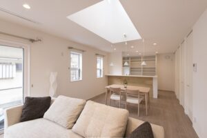 どこからも部屋一面が望めるLDKには吹き抜けや窓から優しい光が差し込みます。