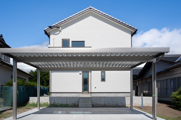 勝手口側に車2台分のカーポートを設置し買い物帰りの奥様の味方