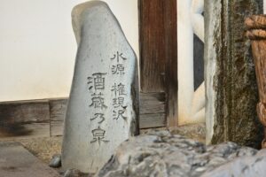 石碑には「水源 権現沢 酒蔵乃泉」と書かれていました。
